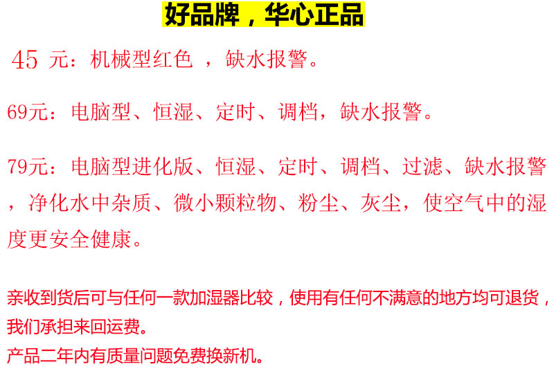 嘿嘿嘿质量很好,第二次购买了,加湿器质量很好,晚上声音非常小,宝贝价格很合适,一下买了两个,价钱便宜,今年冬天我就能好好整理我店里的大衣了,服务也特好,主要是宝贝好,客服都很有耐心的,加水是从水箱加不是出雾口哦。机器反应快,出气大,物流快,物有所值想买的赶快下单,性价比很高,性价比高,卖家发货及时,没有色差,特别好,颜色也跟图片一样没有色差,保湿烟雾也很多,买一个包邮,买两个还要10元运费,还说快递费越便宜越好,还说快递费就给补10块钱,快递服务也好,很满意的一次购物,快递服务也好,很满意的一次购物。