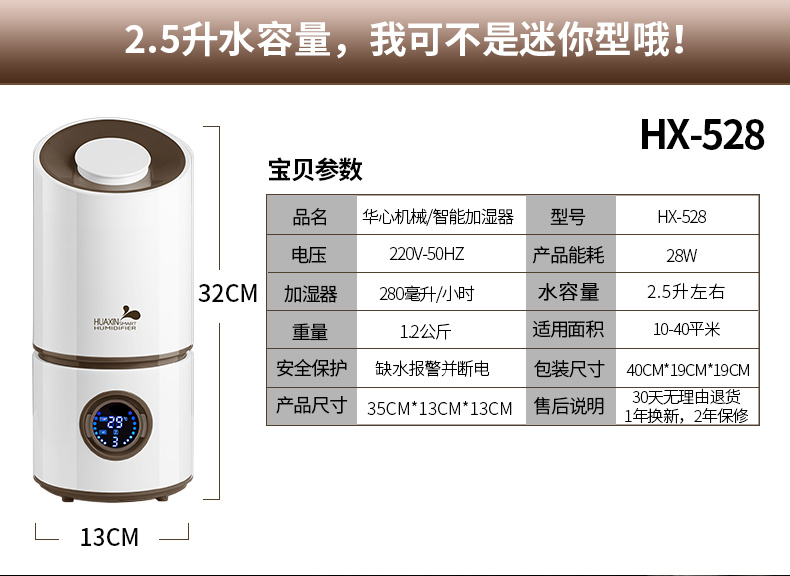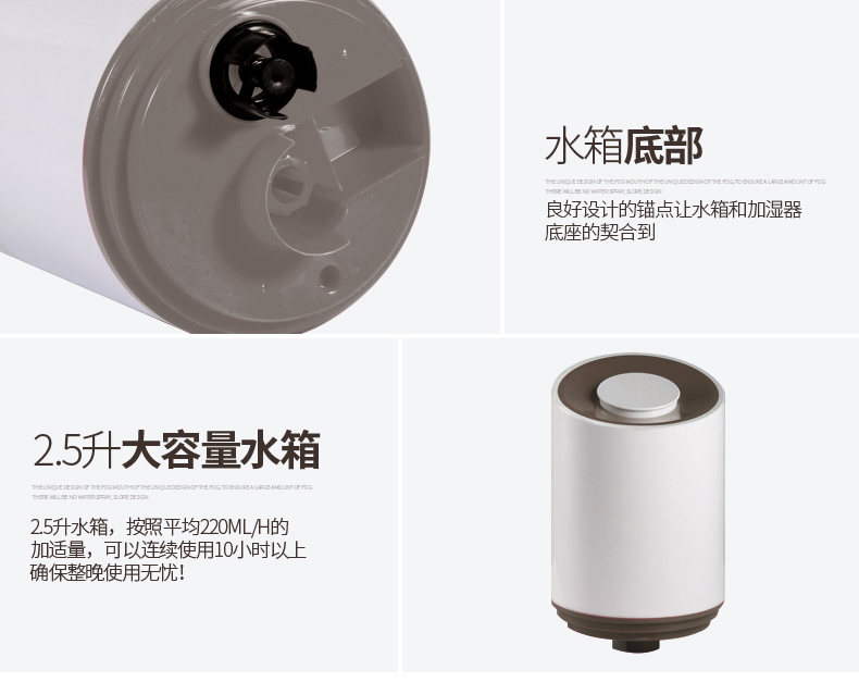 加湿效果:特别好 水箱容量:比较大,用一天没问题 噪音控制:完全静音,不影响休息 外观材质:美观大气上档次