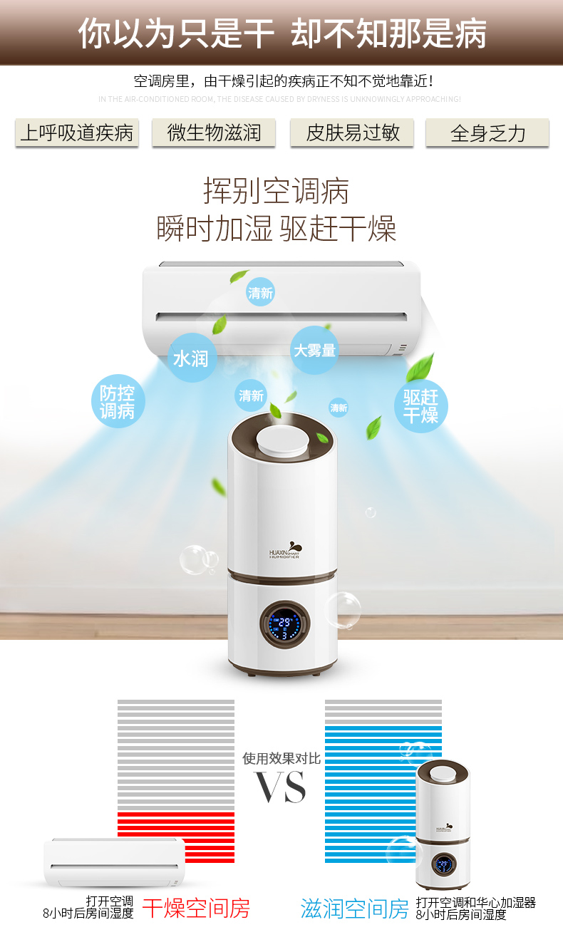 买回来想改善一下屋里干燥的环境,放在柜子上特别小巧精致,老公说很有用!