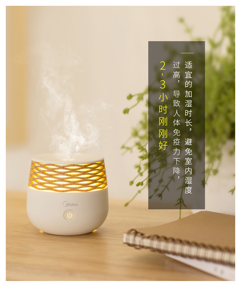 开起灯光来显得很精致,亮度还可以调节,水雾很细,不会造成房间里烟雾缭绕,加湿器可以在水位不足时自动断电,安全省心,喷在脸上也超级舒服的,还有防干烧功能,用着很放心,在房间里也不怕干燥啦,棒棒哒。购买前咨询了客服、很热情,解答了我很多疑虑、收到货也很速度