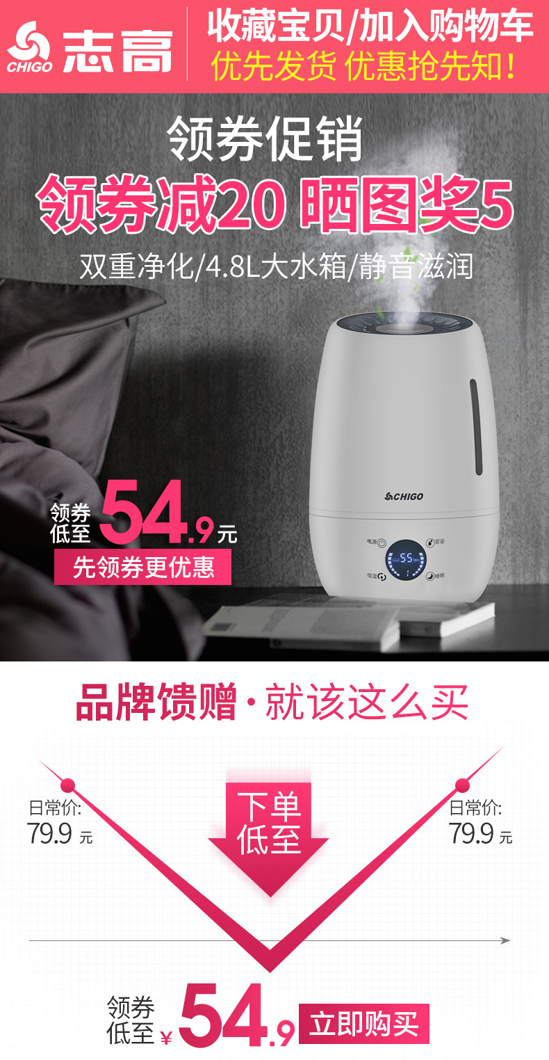 (82)[伟盛电器商城加湿器]空气加湿器家用静音卧室除螨杀菌大雾量月销量99件仅售288元