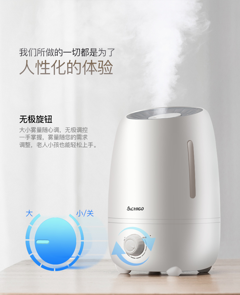 真的特别满意这个加湿器,外观也简约美,很好使,开关从小到大,调整气流大小,特别明显,感觉卧室也不咋干了。售后的服务也特别好,解决问题也很迅速。你值得拥有这样一台加湿器~