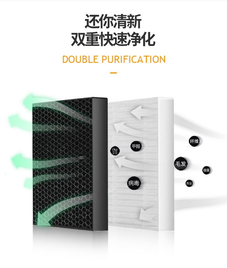 • 功能:消除异味 过滤灰尘 杀菌 吸收TVOC气体 芳香功能