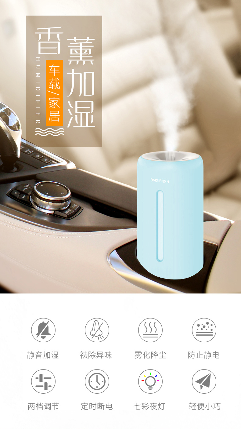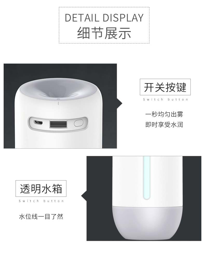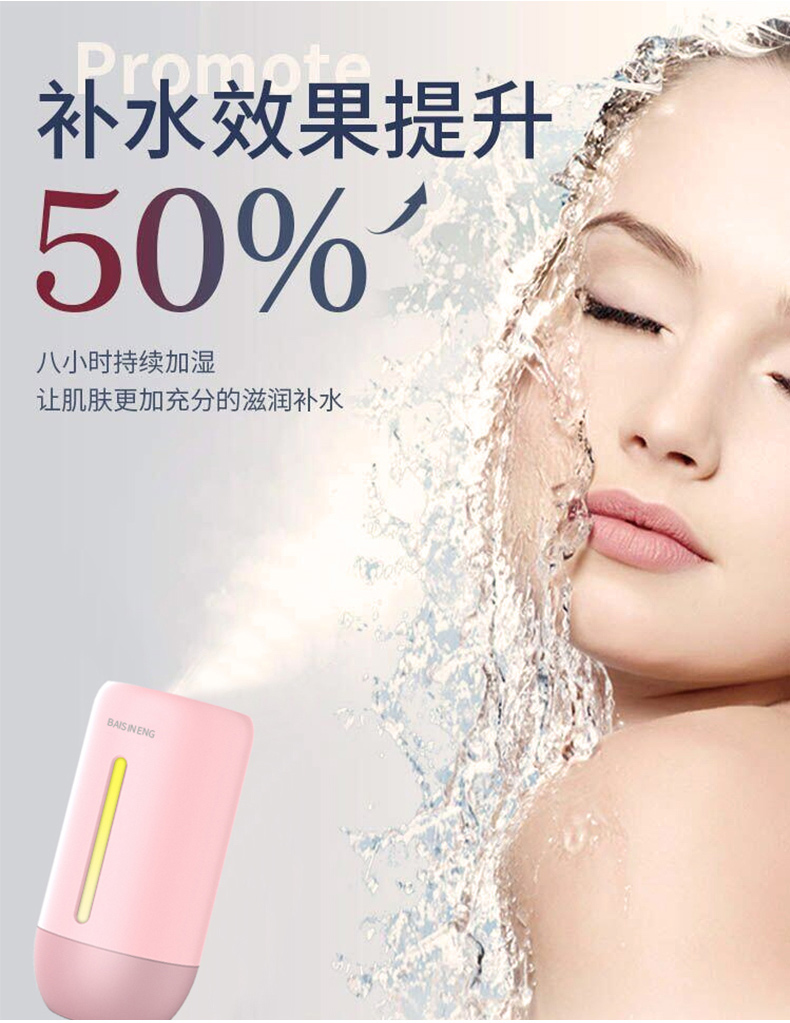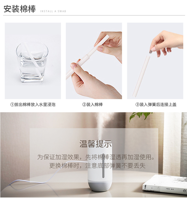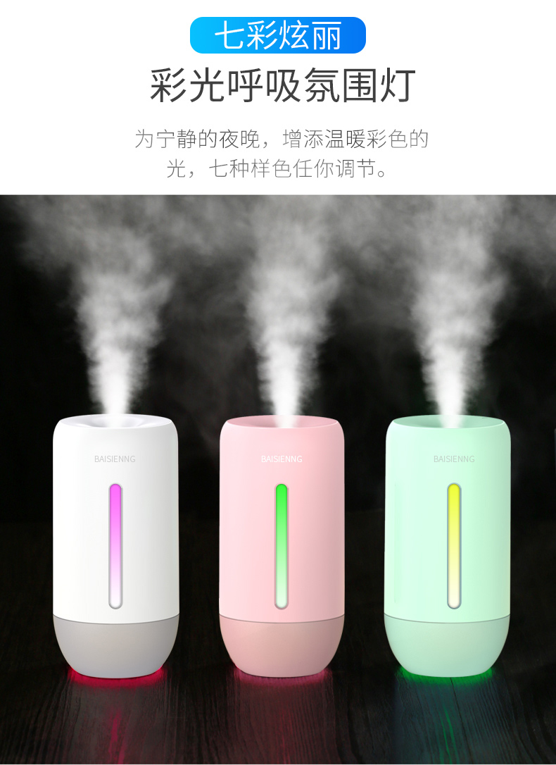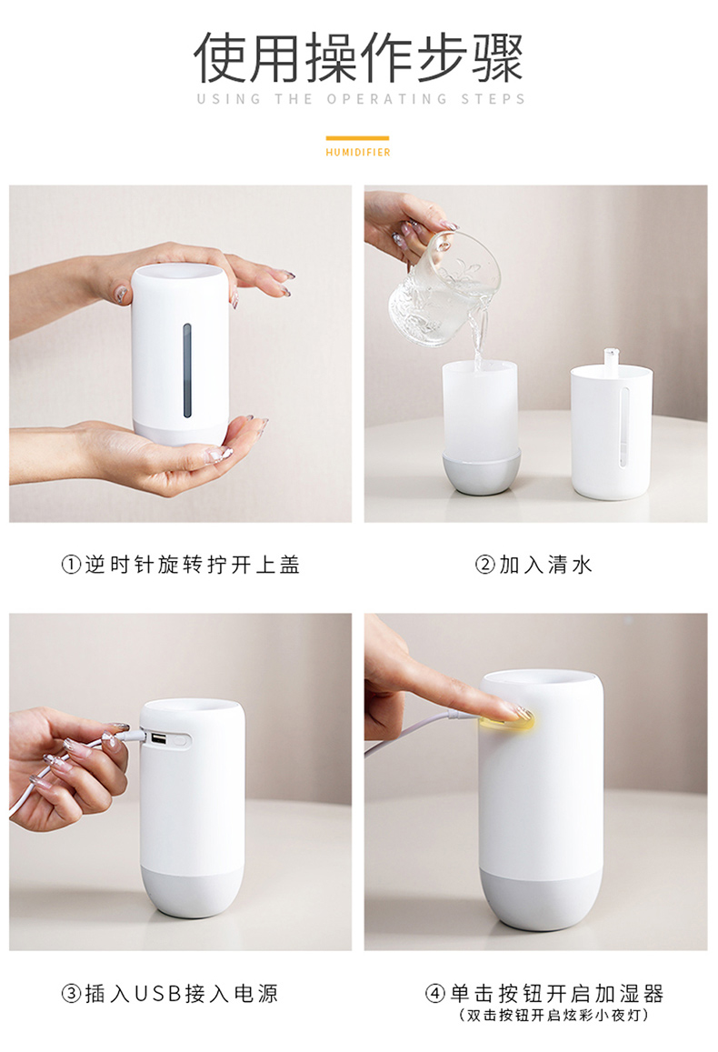 这个加湿器真的很适合放在床头 小小的很方便 冬天空调房实在太干了!这个真的是必备的 补水效果很好 试用了一段时间这个迷你加湿器真的很实用 小巧玲珑的很清新 而且简单大方使用方便 颜色很好看没有色差 还会降低灰尘颜值很高 喷雾量很大而且很细腻呢 不会沾湿桌面呢 真的不错值得推荐!