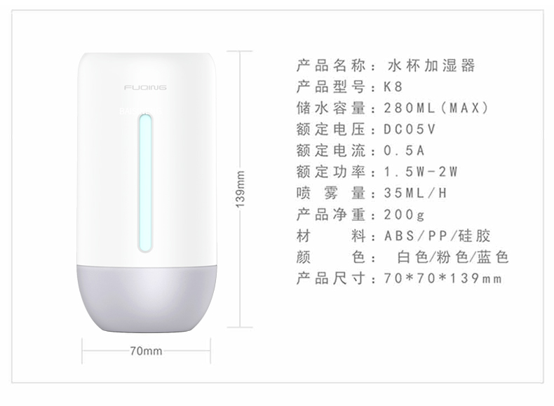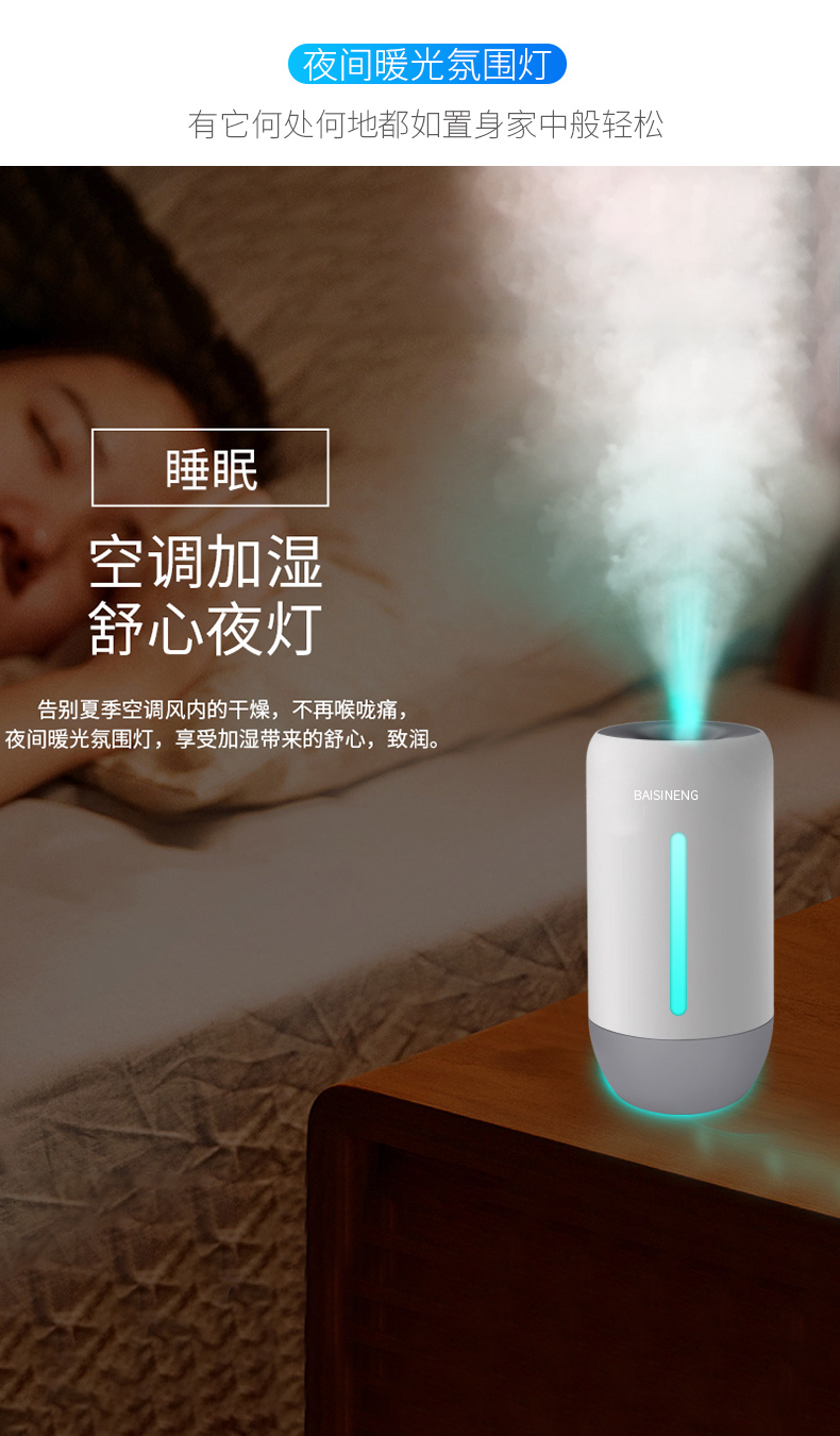 冬天了晚上睡觉放床头柜上刚好不干燥,昨晚用了一晚上,没水了它自动就关电了,真的用的很放心,喜欢的亲们就不要犹豫了,东西确实不错,小身材大用处,放床头柜,电脑桌都可以的。