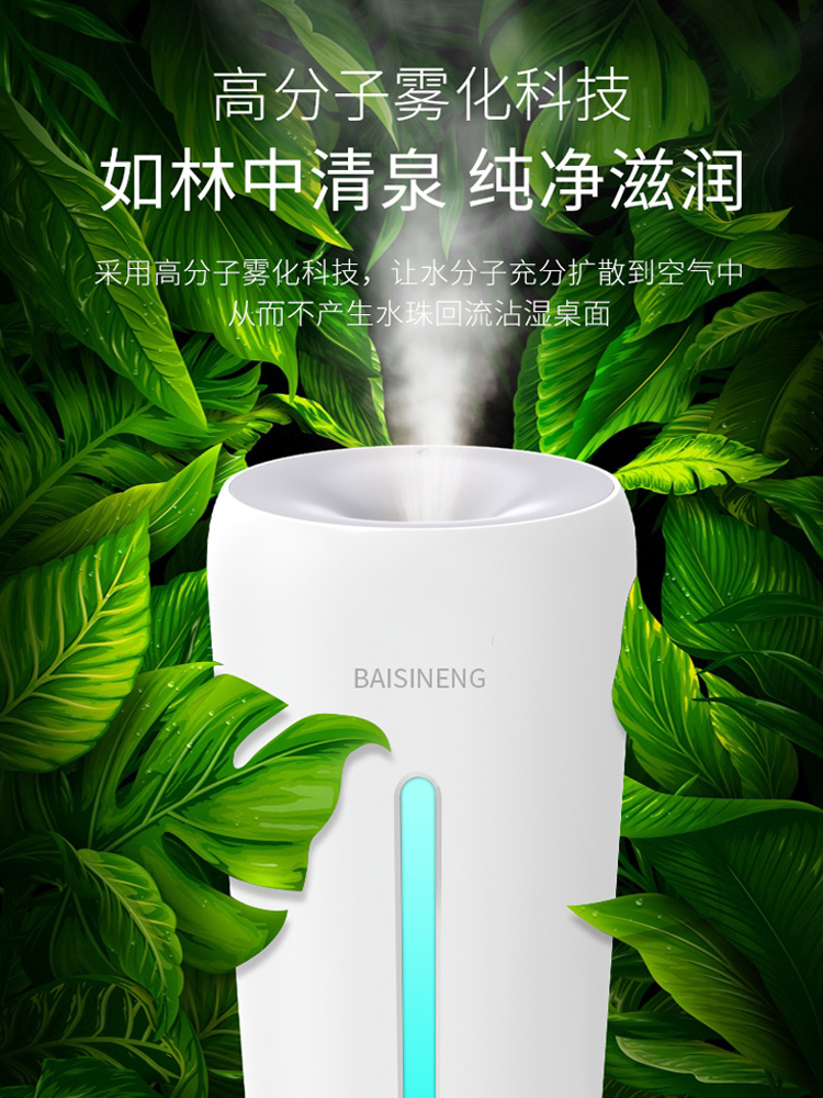 加湿器不占空间,都是雾状的效果很好,效果特别好, 没有声音,造型很好看,摆在家里还可以当装饰的用品卖家发货很快,放在办公桌上也不碍事,出雾也很大,能够满足一个人在空调间的需求。性价比很高,质量强硬,出雾也很细腻,值得购买