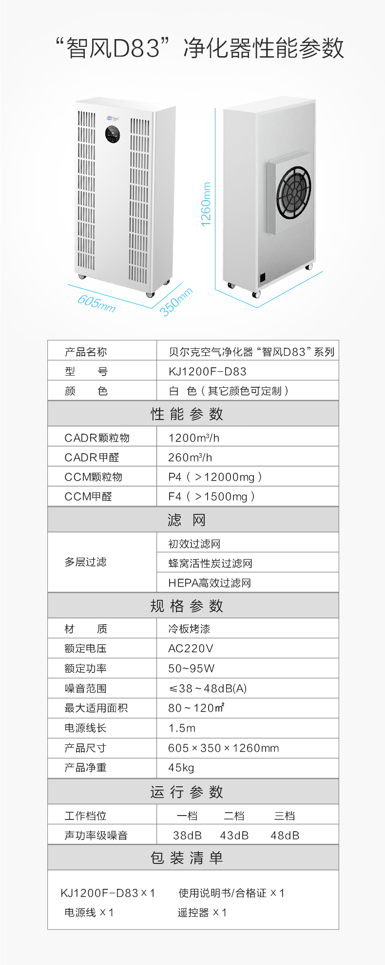 [贝尔克科技商城空气净化,氧吧]贝尔克ffu空气净化器 家用卧室除甲月销量196件仅售1299元