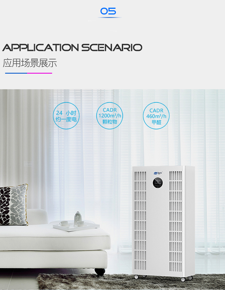 • 颗粒物CADR值:1200立方米/小时
