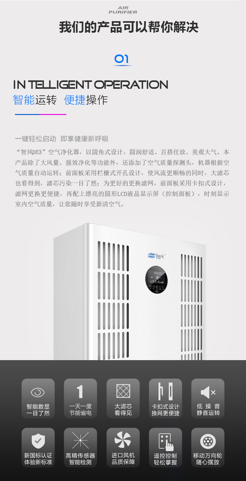 • 空气净化产品类别:空气净化器
