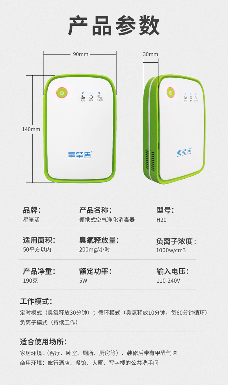 • 颜色分类:清新绿1台(负离子+臭氧) 清新绿2台(特惠组合)