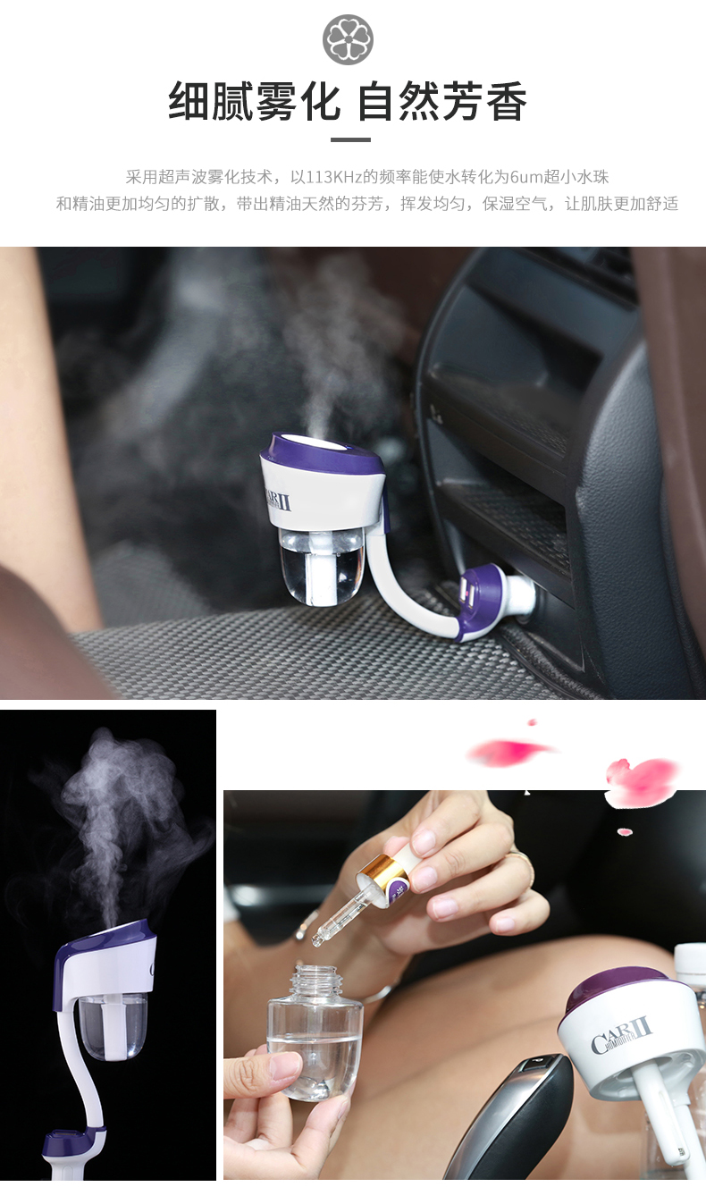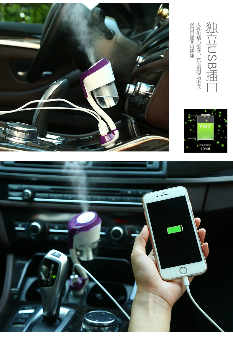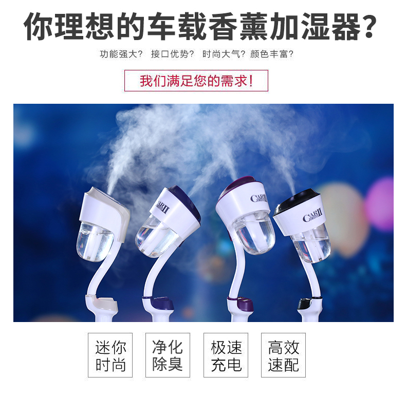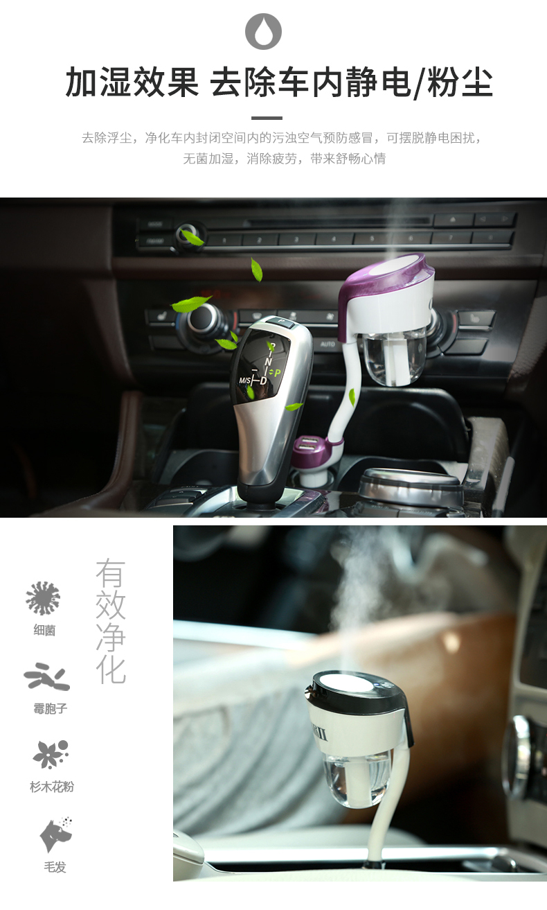 汽车净化车用补水喷雾香薰车载加湿器大雾量usb车内迷你精油空气