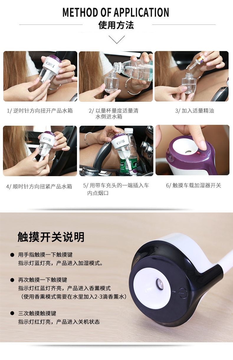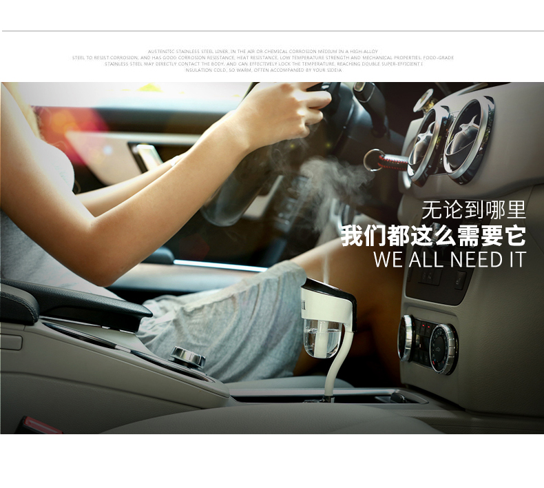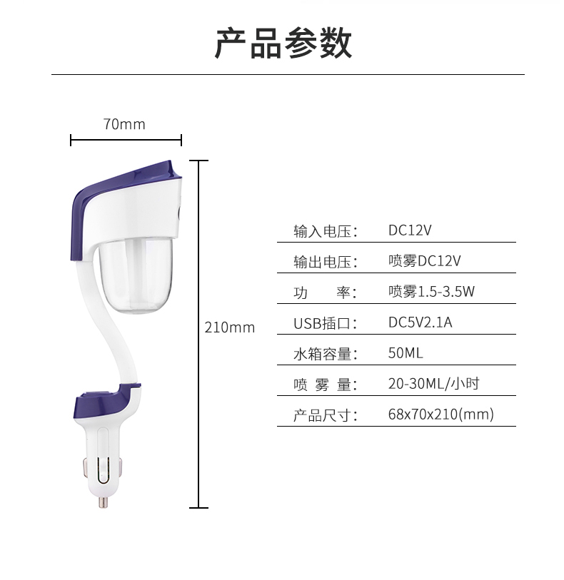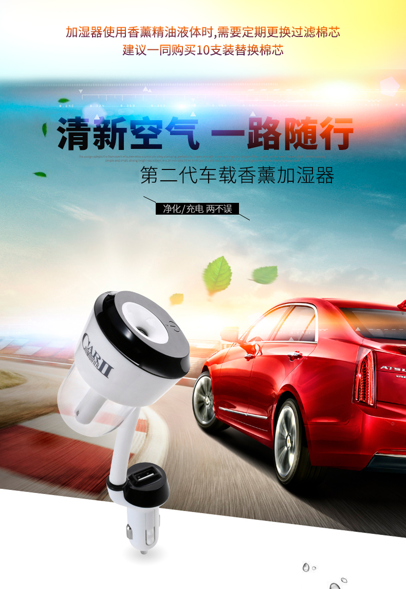 汽车净化车用补水喷雾香薰车载加湿器大雾量usb车内迷你精油空气