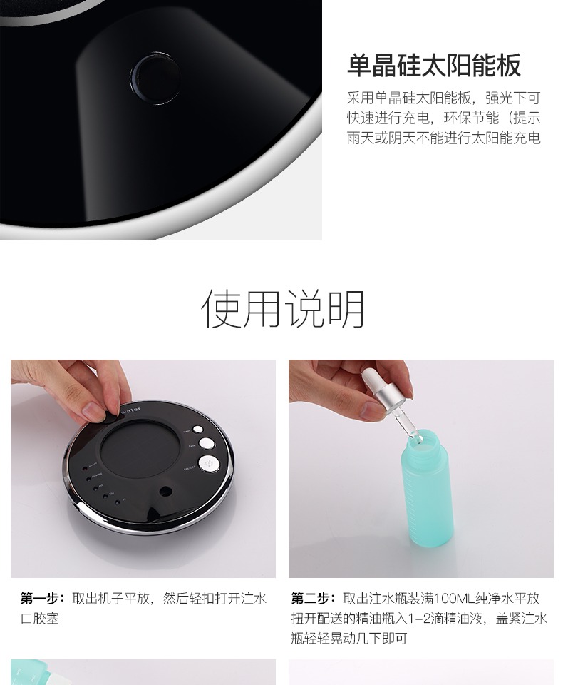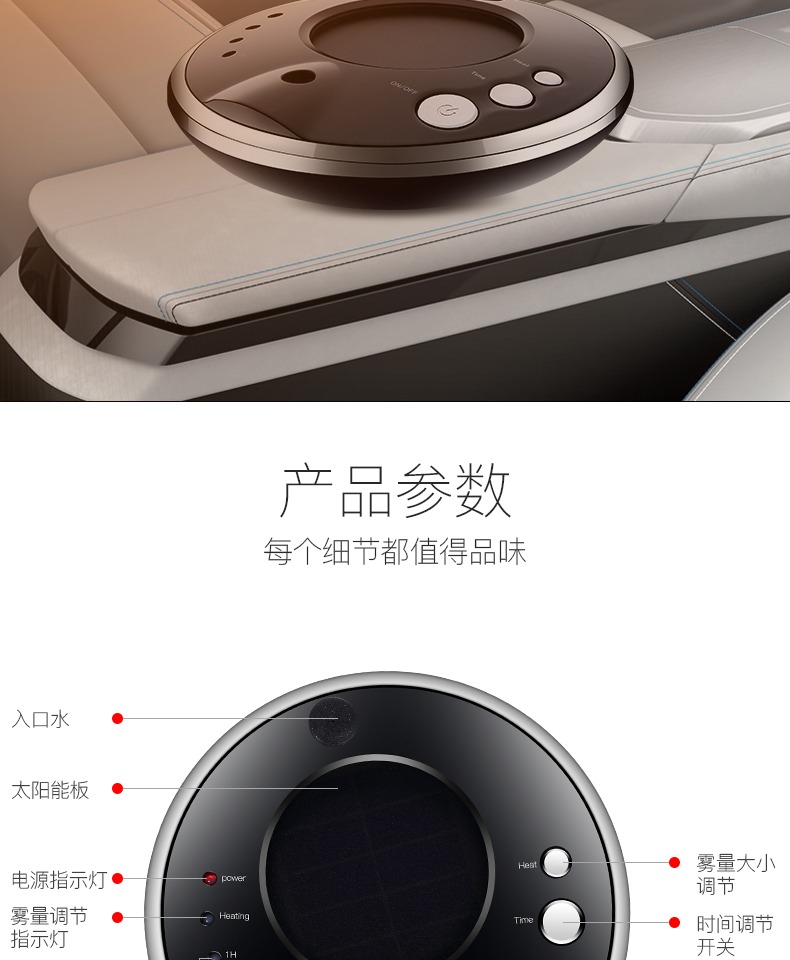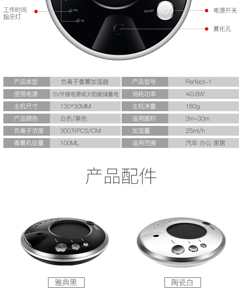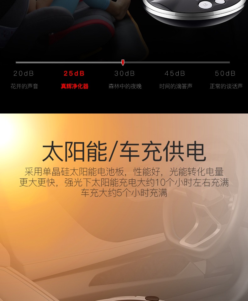 拆开之后一拿到手就被他的质感感动到了,很有分量,这个配色一看就很舒服,价格也很优惠,性价比真的很高,特别喜欢这个简约的设计,质量强硬,放在车子里大小也很合适,放进去用了两个小时,淡淡的清香味,效果很给力~这段时间天气也好,没充过电,全靠太阳能,貌似电量也还有,比较满意的一次购物体验