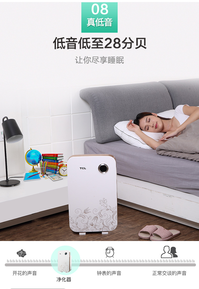 TCL 空气净化器好用,效果明显,特别是家里抽烟过滤二手烟效果明显,对过敏原亦能起到过滤作用。