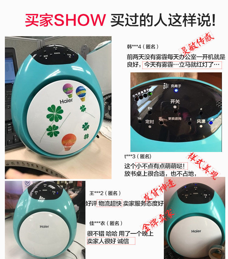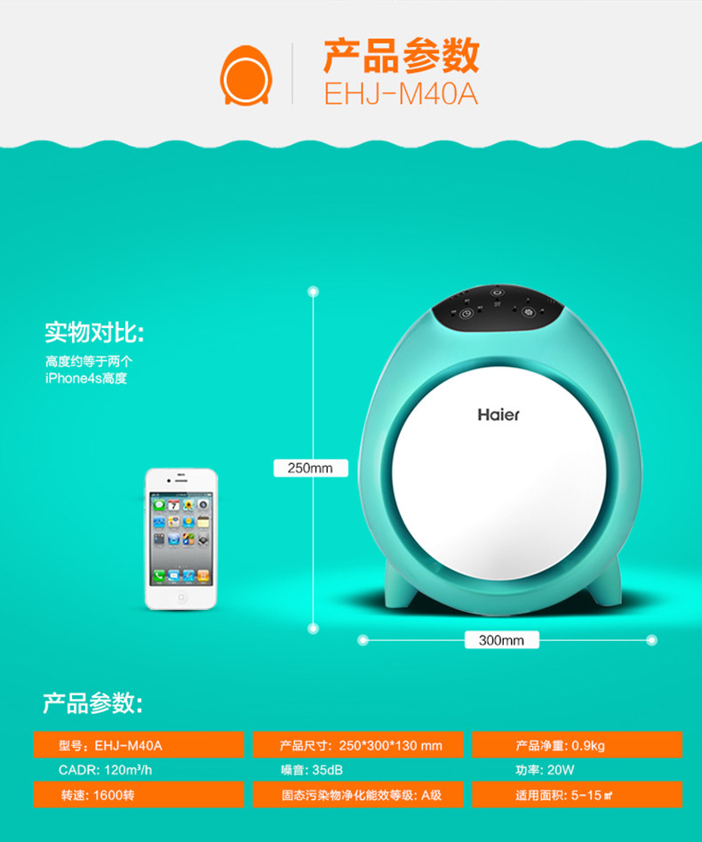 [海尔智能生活折扣馆空气净化,氧吧]海尔空气净化器ehj-m40a小型迷月销量2件仅售249元