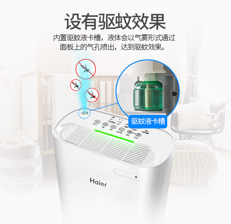 声音还可以,睡眠模式没有灯光,声音很轻,放房间客厅里,过个几分钟就从蓝色变绿色了,没看过红色,心里还是美的!说明家里空气还行!还带了驱蚊功能,还随包装送了瓶驱蚊液,还不错,现在搞活动,送滤网,很划算的。