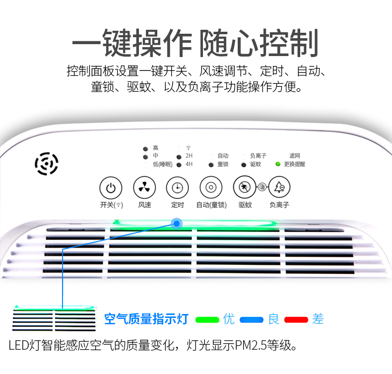 不占地,好移动,很轻,触屏控制非常方便,开了一天,感觉家里没那么呛了,很满意。