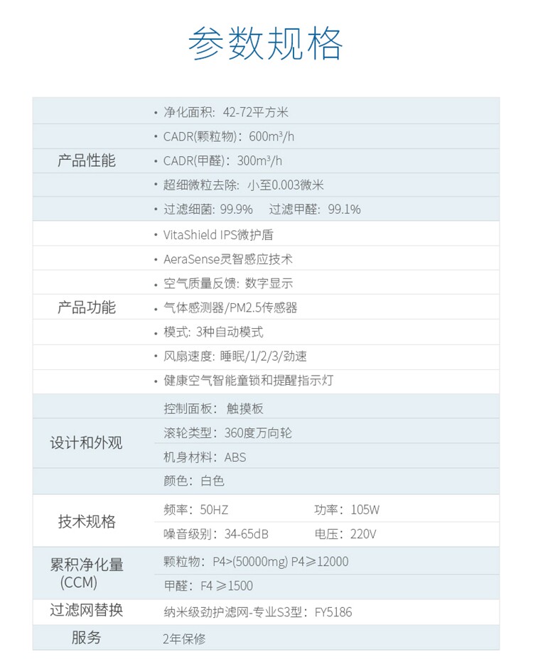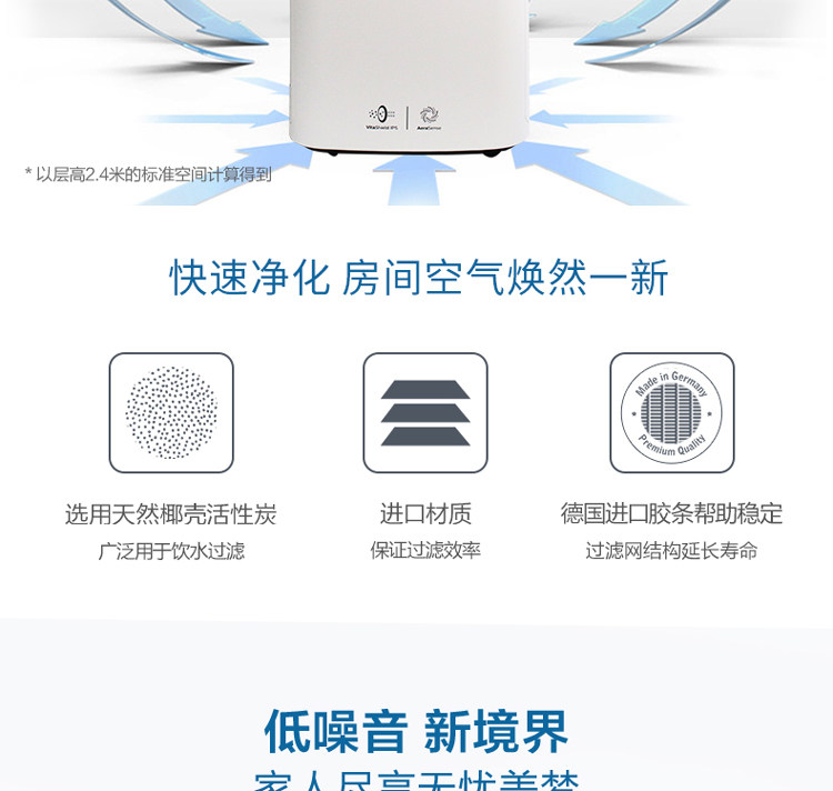• 功能:定时 除VOC 除花粉 除颗粒物 除甲醛 除烟除尘 杀菌 除雾霾 除菌