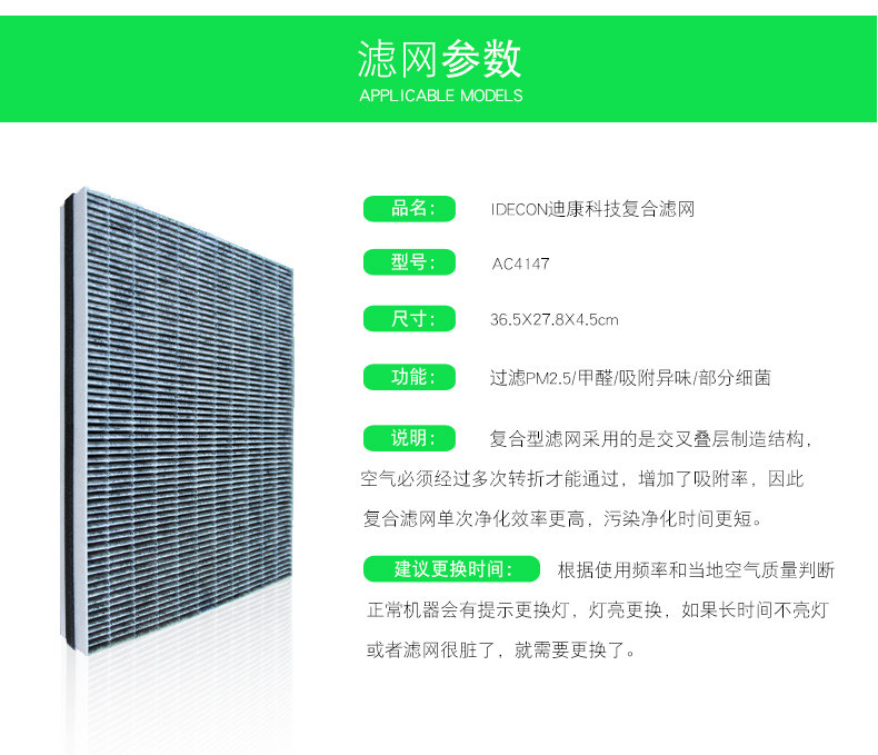 [idecon旗舰店空气净化器]迪康 尺寸适配飞利浦空气净化器AC4月销量4件仅售119元