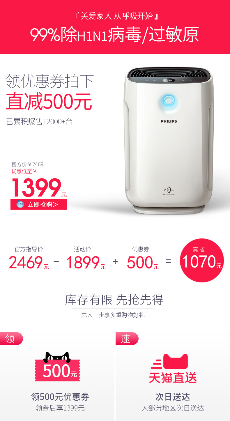 给家里买的净化器 收到货了之后就试了试 过了一会红灯就变蓝色了 看来效果非常不错 推荐大家购买