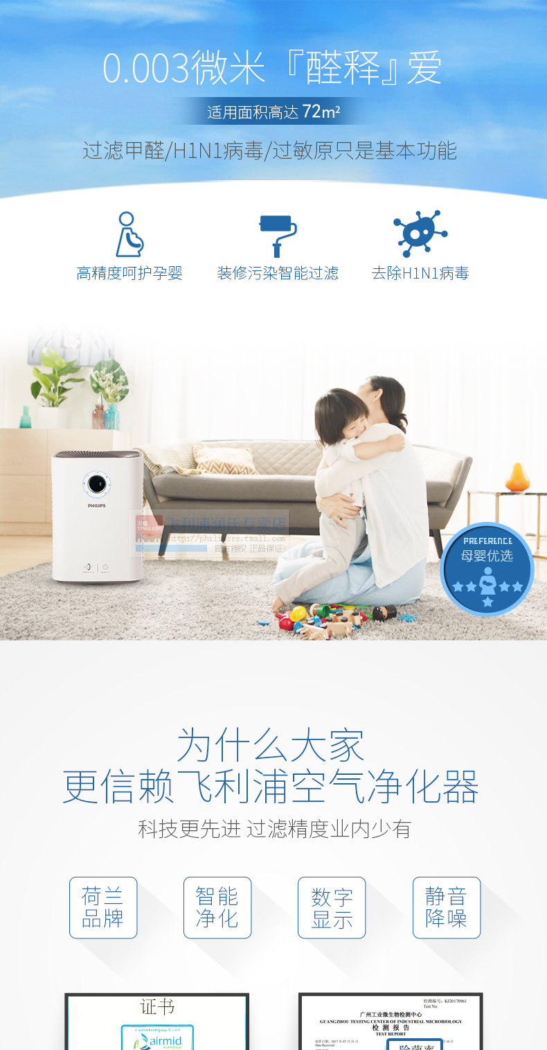 新家刚装修好,想着买台净化器,多家对比选择了飞利浦,大品牌值得信赖