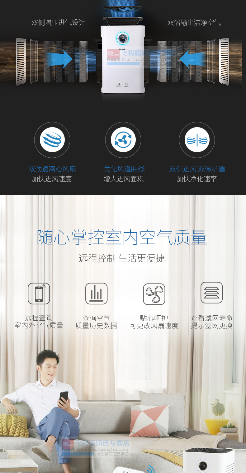 新家入住不久,家有小孩,担心空气污染,之前买了一个几百的,真的一点都不智能,就像一个电风扇。看到飞利浦搞活动,果断下单买一个,目测高大上,用几天再来评价使用效果。