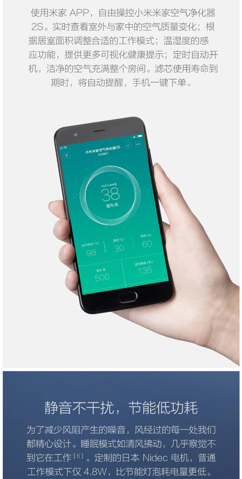 宝贝颜值爆棚,简洁不简单,很有设计感,买了两台,第一次买小米的东西,超出自己的预期,已经买了全套小米装备,性价比的确高!用了几天,感觉对室内空气有明显的改善!不错!
