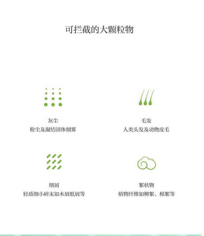 抗菌版:以上两个版本的基础上增加了一层重金属离子化过滤材料,用于过滤空气中的细菌霉菌等。同时依然增加了一层除甲醛的活性炭层,可以吸收一定量的甲醛(由于容量限制,除甲醛效果小于除甲醛版)。建议有过敏性皮肤或老人小孩的使用。
