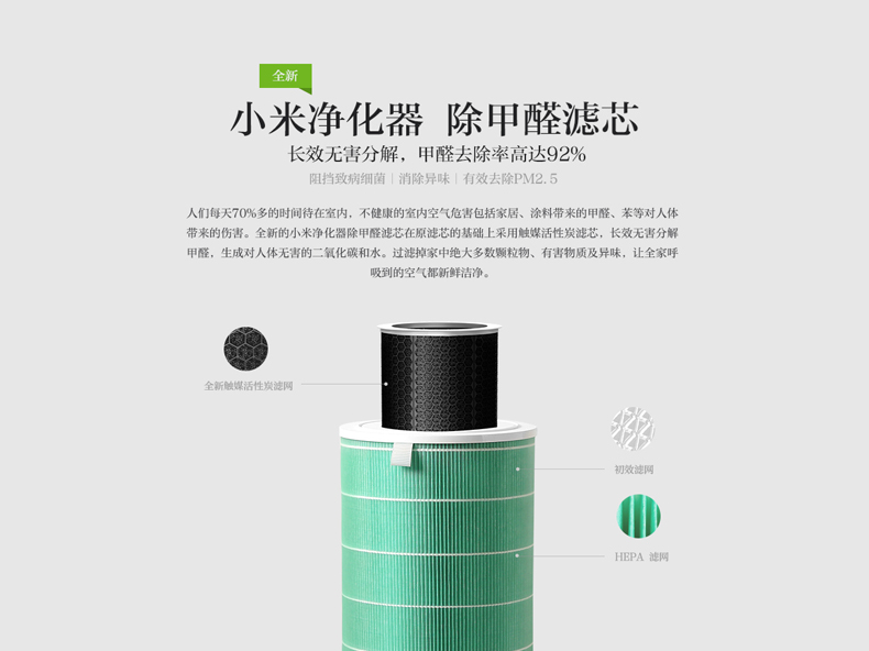 除甲醛版:在标准版基础上增加了一层除甲醛的活性炭层,可以吸收一定量的甲醛(活性炭层有限,使用寿命要低于标准版),如有装修或其他甲醛污染类的可以使用。