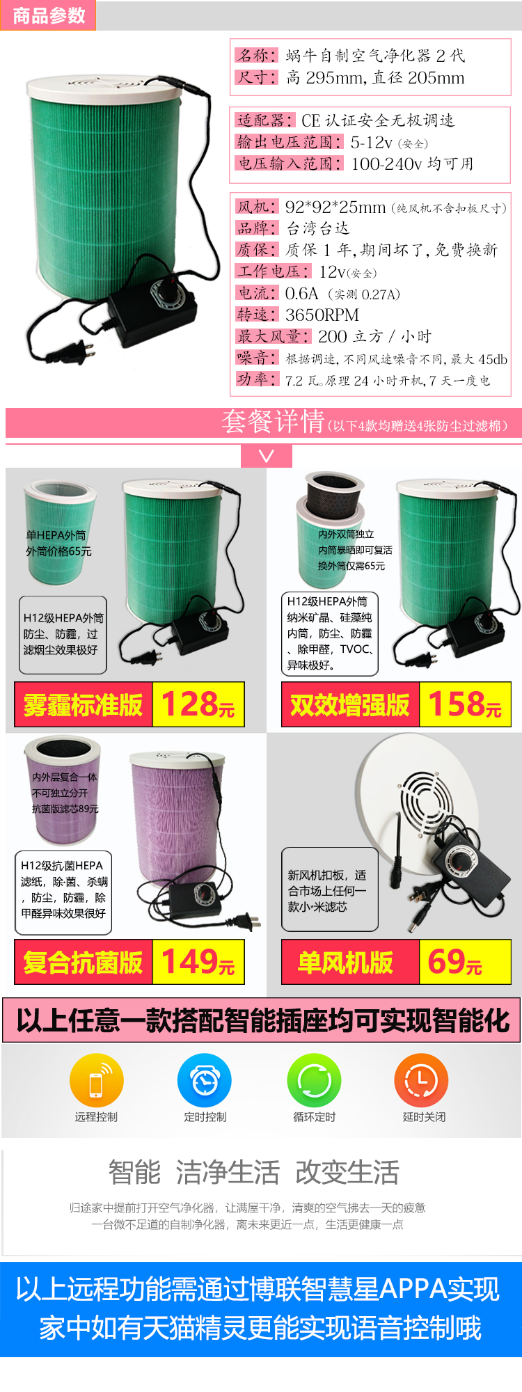 [蜗牛空净耗材店空气净化,氧吧]snaildream自制空气净化器 月销量344件仅售158元