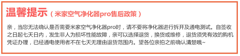 3.确定购买,再拆封使用,净化器滤芯一旦通电使用将影响二次销售,不支持7天无理由退货。