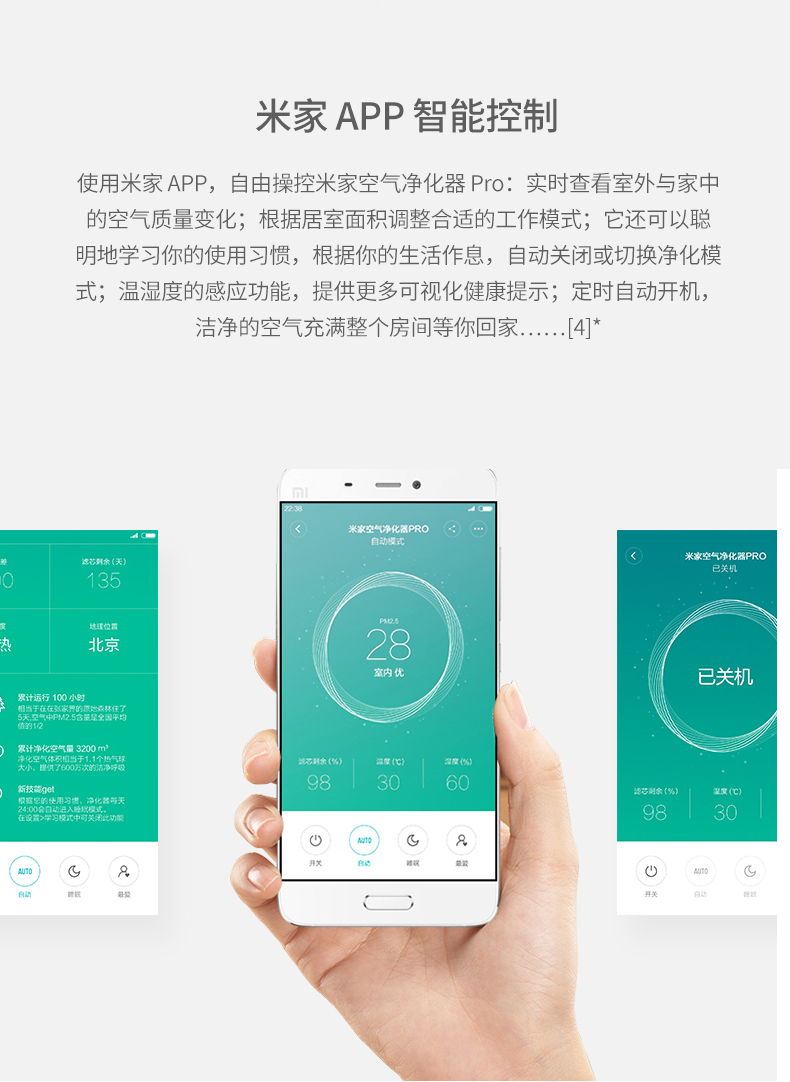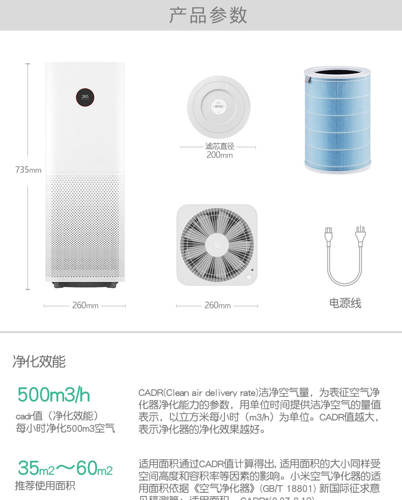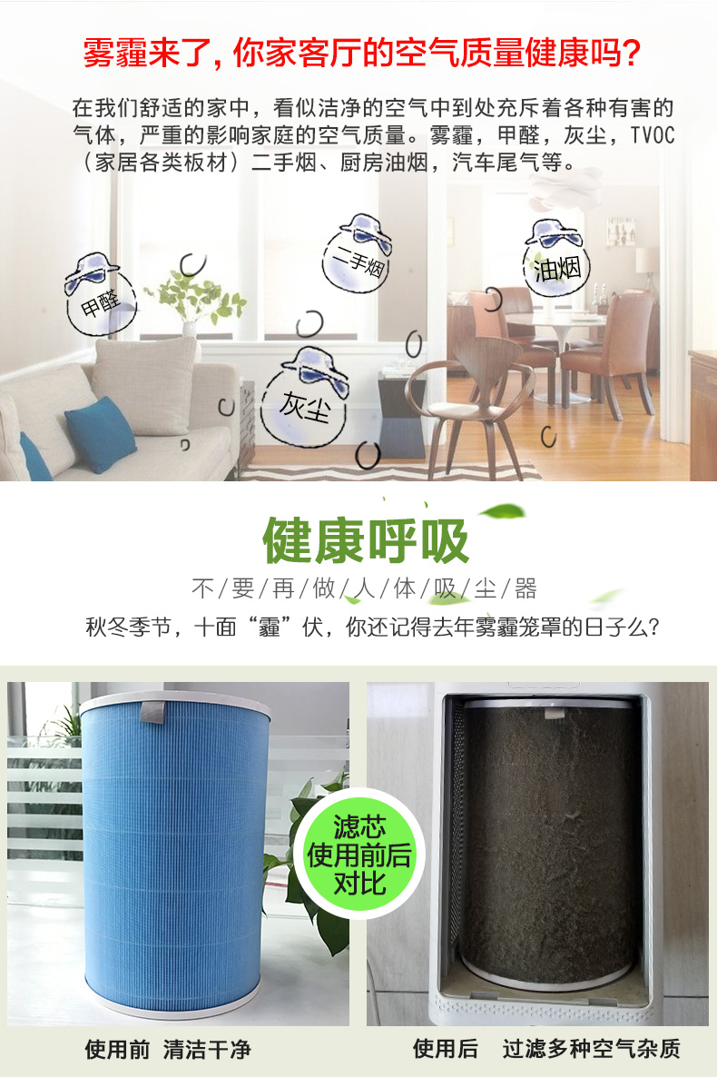 试用了一下,静音,敏锐。美观的白色,还有赠送的滤芯。很棒。今天晚上试一试和小爱同学连接。
