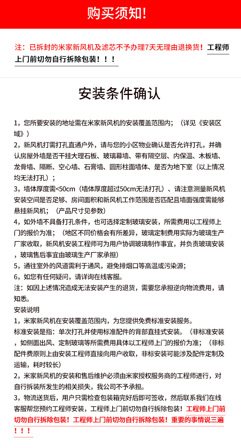 6.工程师上门前切勿自行拆封外包装箱,拆封后不支持退换货!!!