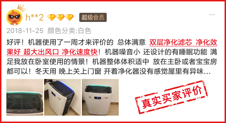 给父母买的一款,净化空气效果很棒,很给力,试用了噪音小,净化快速,值得好评!