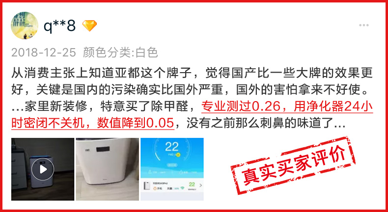 宝贝很好用,在室内吸烟后真的感觉没有烟味,开机10分钟后PM2.5指标由20降到10,亚都是专做室内环境空气设备的,所以选了这个,自家的亲属开棋牌馆的,用了这个后烟味没有了。
