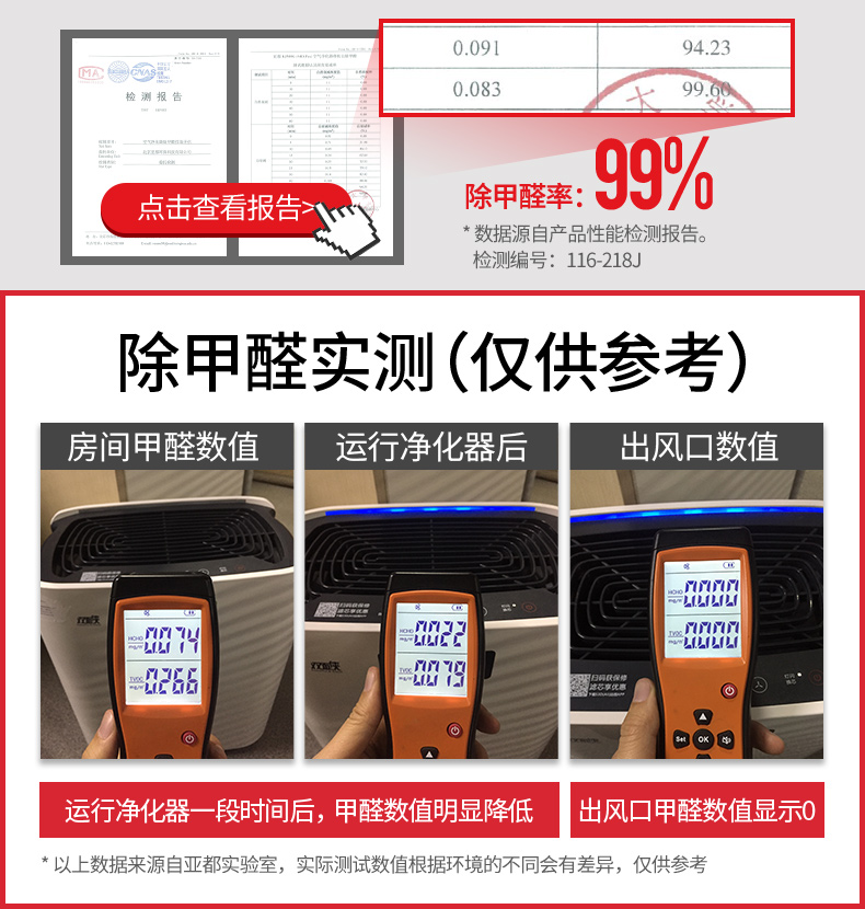 用完效果PM2.5效果立竿见影。一般都是几十,开最大风量一会就降低到10以内了。甲醛效果还没测试。不过明显感觉空气边干净了,甚至有一点点还有湿润,加湿效果。最大风量。效果好,就是噪音大,睡眠模式很安静。我有次关不了机,重启下就好啦。客服说我可以换货。但是我感觉没必要。我相信亚都。总体很超值,1499,加三年滤网超值。