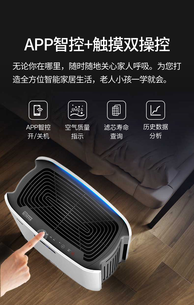 净化器效果不错,瞬间空气变得很清新。用手机控制一目了然。可以根据屋内的空气质量时时检测。很棒!物有所值