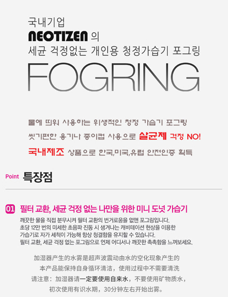 [KOREA母婴生活馆加湿器]韩国直邮FOGRING甜甜圈加湿器迷月销量3件仅售238元