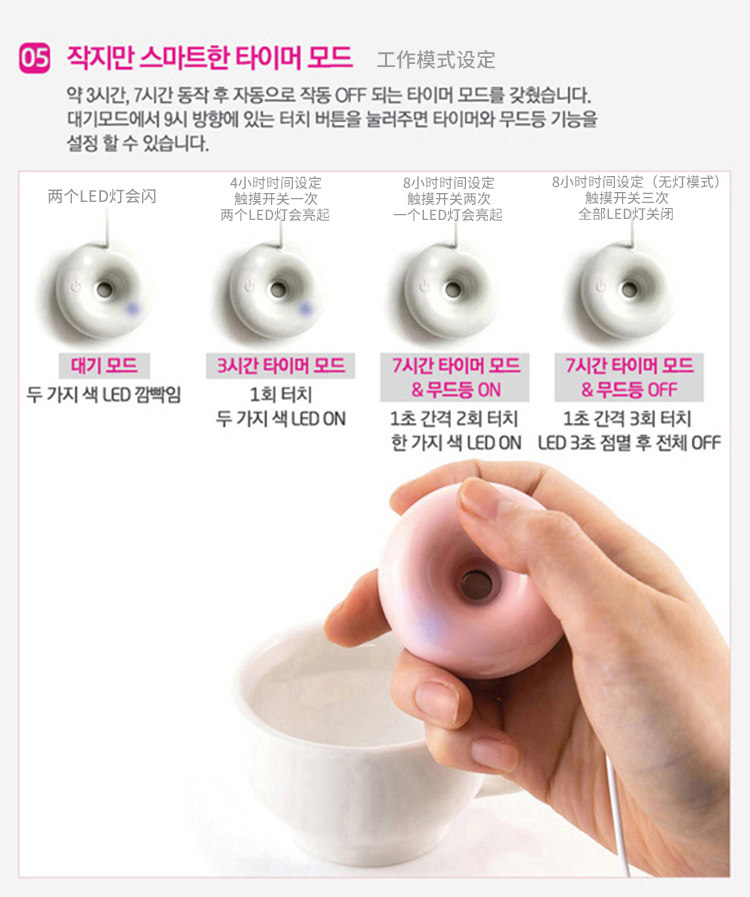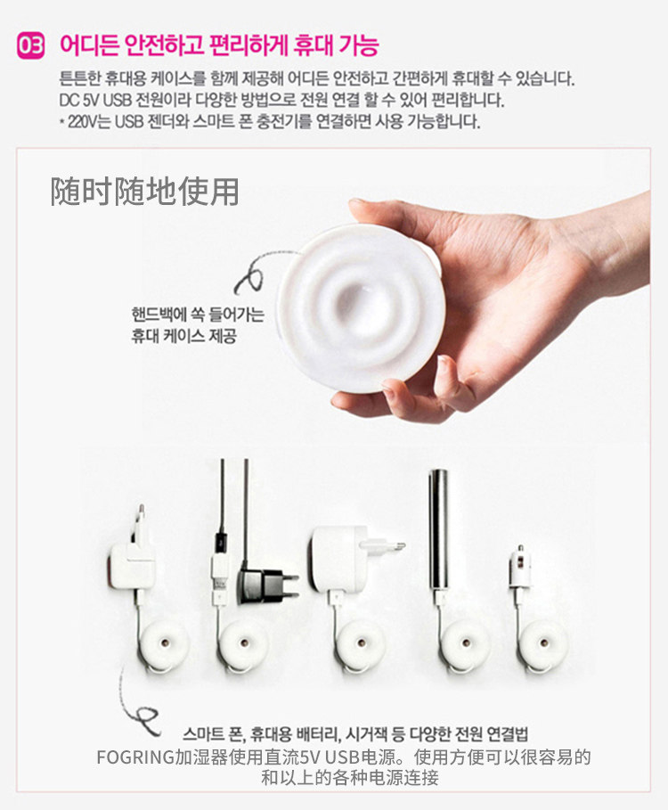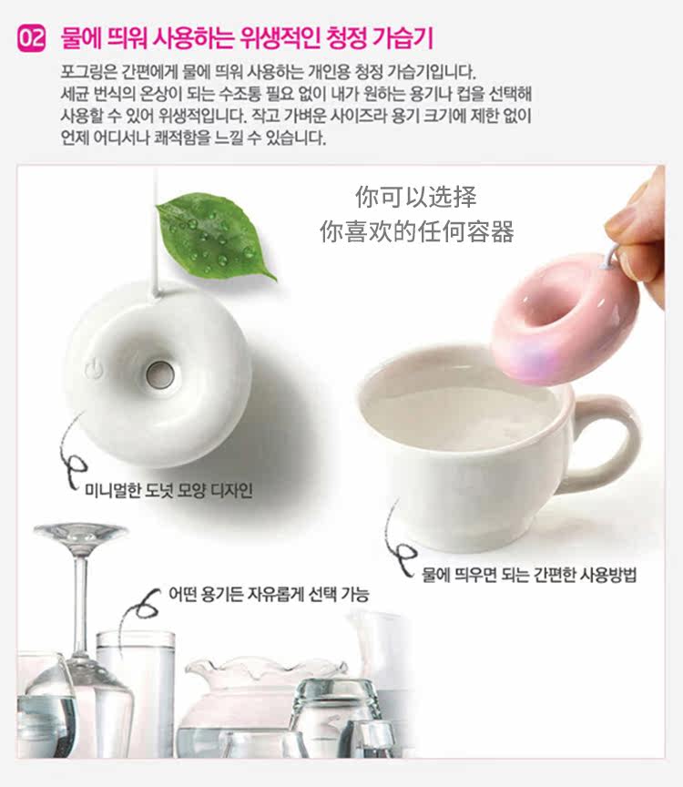韩国直邮FOGRING甜甜圈加湿器迷你随身超声波加湿器 静音空气净化
