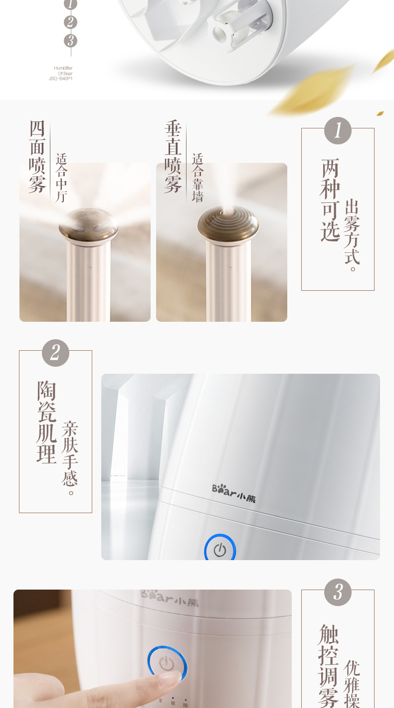 小熊加湿器家用静音卧室孕妇婴儿大容量香薰机空气加湿净化器增湿