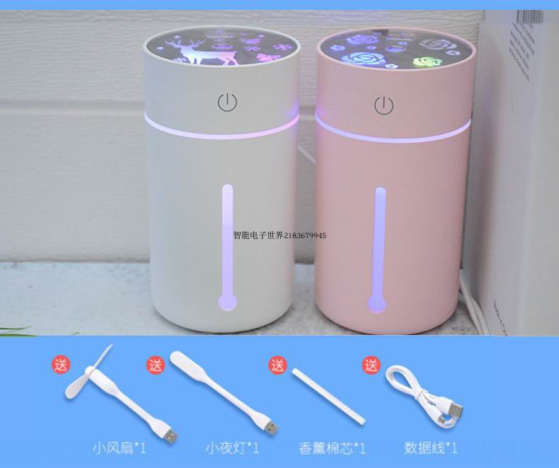 智能加湿器家用迷你空气净化婴儿监护USB办公室WIFI远程监控4K高清小台灯/小风扇