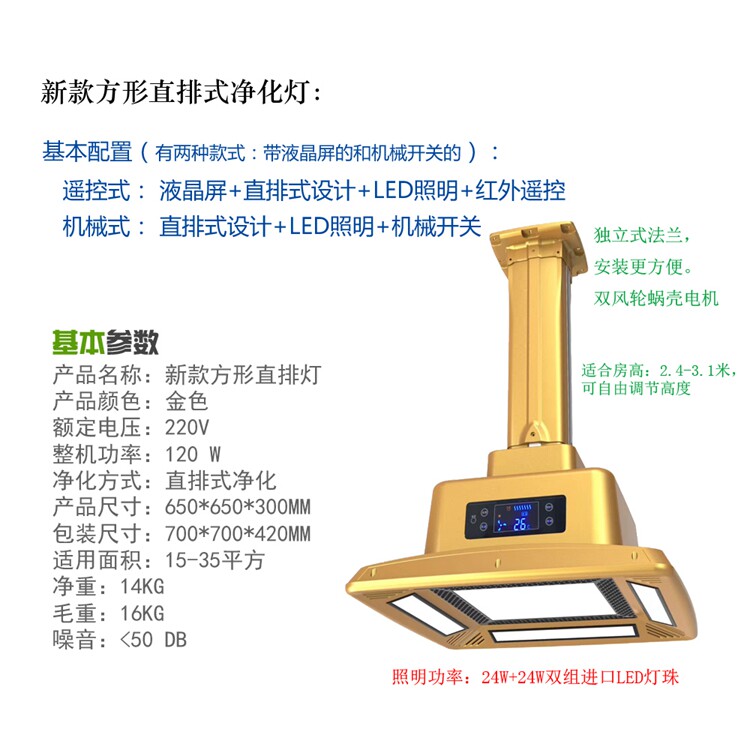 此款产品为直排式吸烟灯,需要布置管道,直接利用风机把烟雾排出室外,