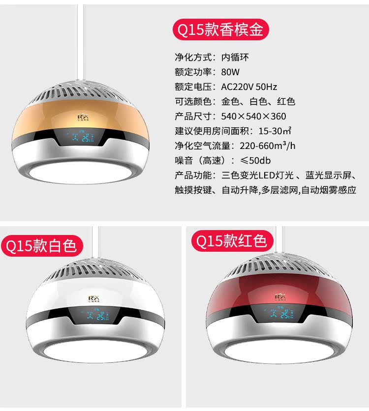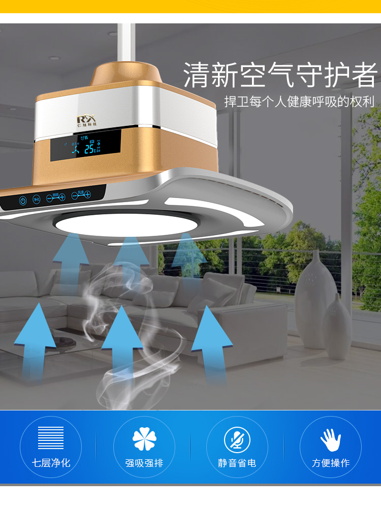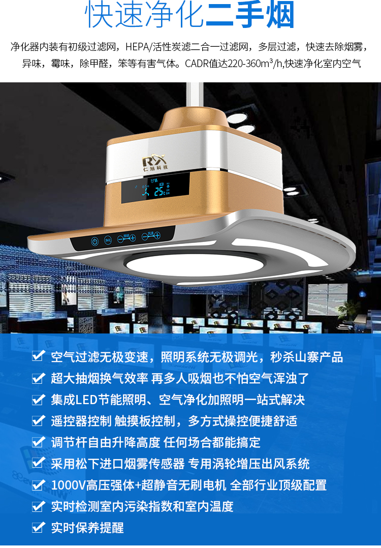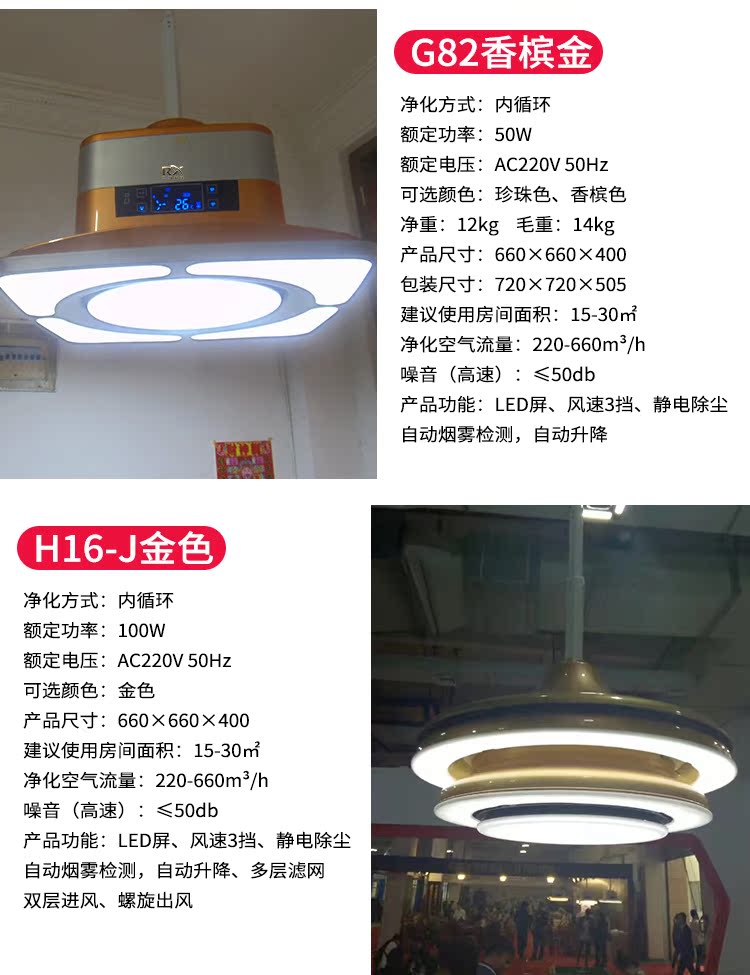 棋牌室空气净化器麻将机桌会所家用吊灯吸烟宝消烟宝吸烟灯排烟机