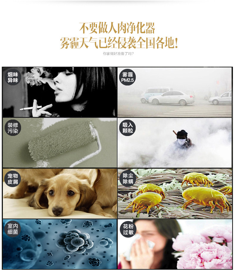 客服介绍和答询比较到位,发货及时包装牢固,快递是顺丰,非常快。到货商品与描述一致,这款空气净化器做工细致,用料厚实。用了一天说下感受:操作比较简单,把机器挪到每个房间运转,过程基本一致,只是时间长短的区别。在强光下以往明显能看到的细小飞尘和绒毛确实不明显了,甚至暂时看不到了……看来净化还是有效果的,更多的了解等过段时间观察一下机内的积尘再说吧。好评支持一下卖家!