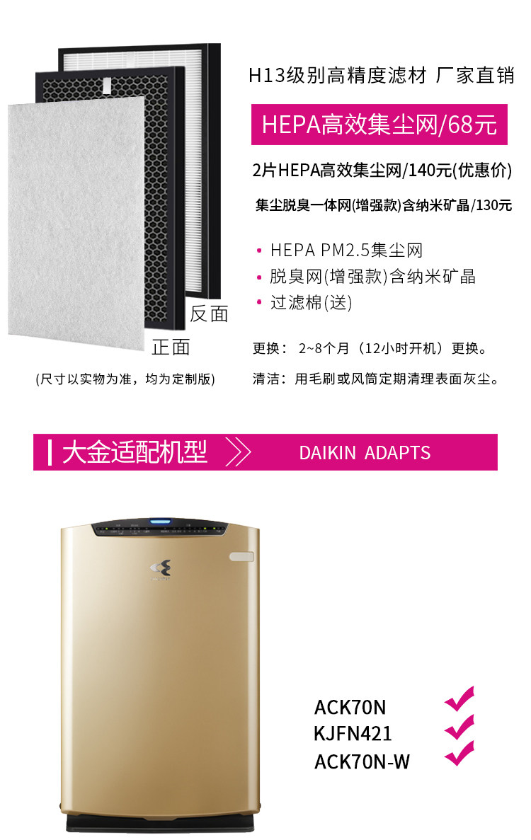 • 大金净化器过滤网:除甲醛,pm2.5,异味,脱臭氧