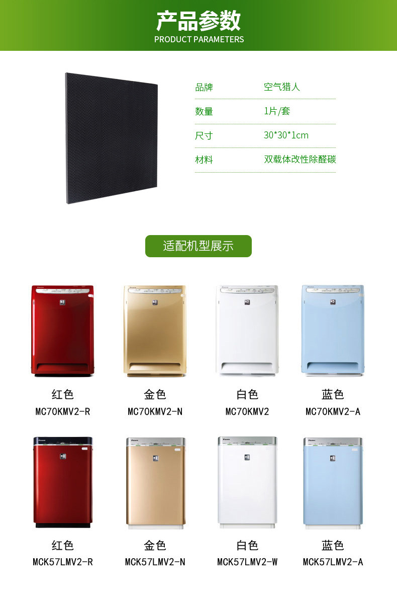 空气猎人 配大金空气净化器过滤网/除臭网适用MC70KMV2 MCK57LMV2
