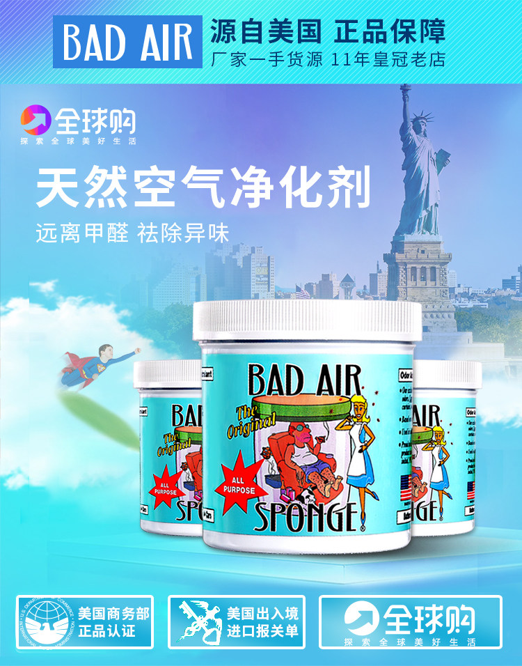正品海外直供美国空气badairsponge家用汽车载器除甲醛空气净化剂