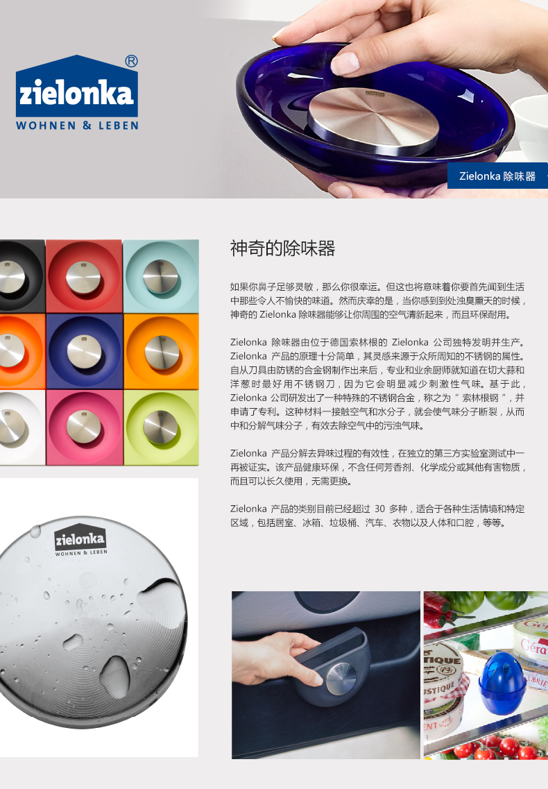 它叫“索林根钢”,这种材料一旦同时接触空气和水,就会发挥作用,分解空气中有害气体和异味的分子,并还原成对人体无害的氧气和氮气等,从而达到净化空气和除臭的效果。Tips:“索林根钢”是zielonka公司发明生产的,并且申请了专利。“索林根”是德国知名的不锈钢刀具生产地,德国很多高端刀具产自这里,它们使用的“索林根钢”其实也是zielonka公司的。