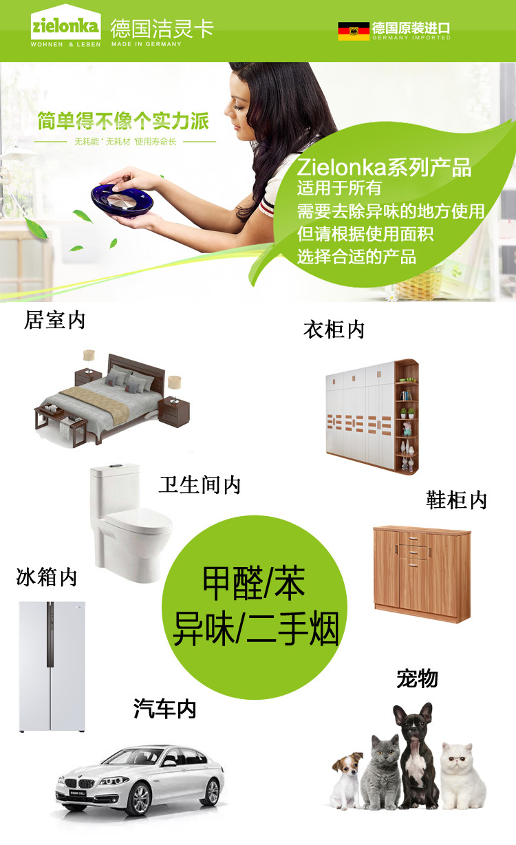 德国Zielonka汽车车载空气净化器除甲醛异味无耗材可用50年