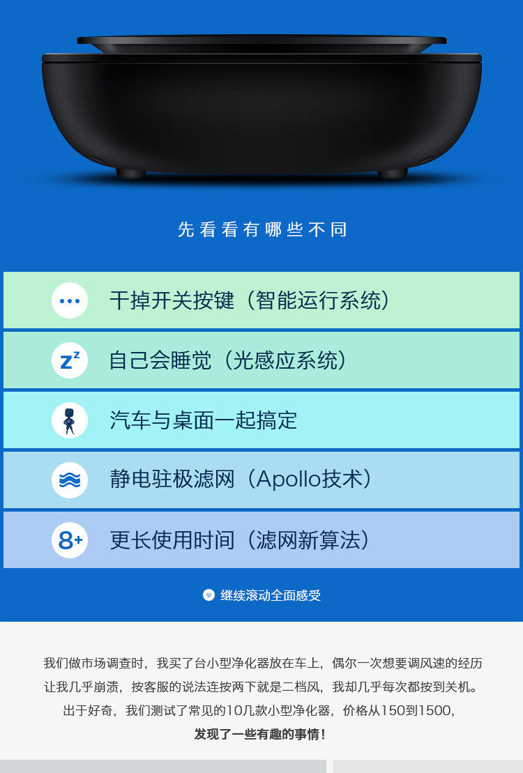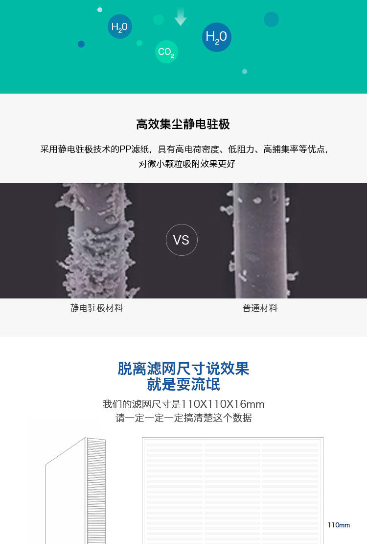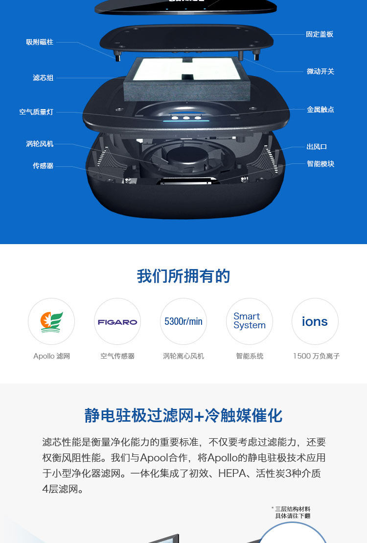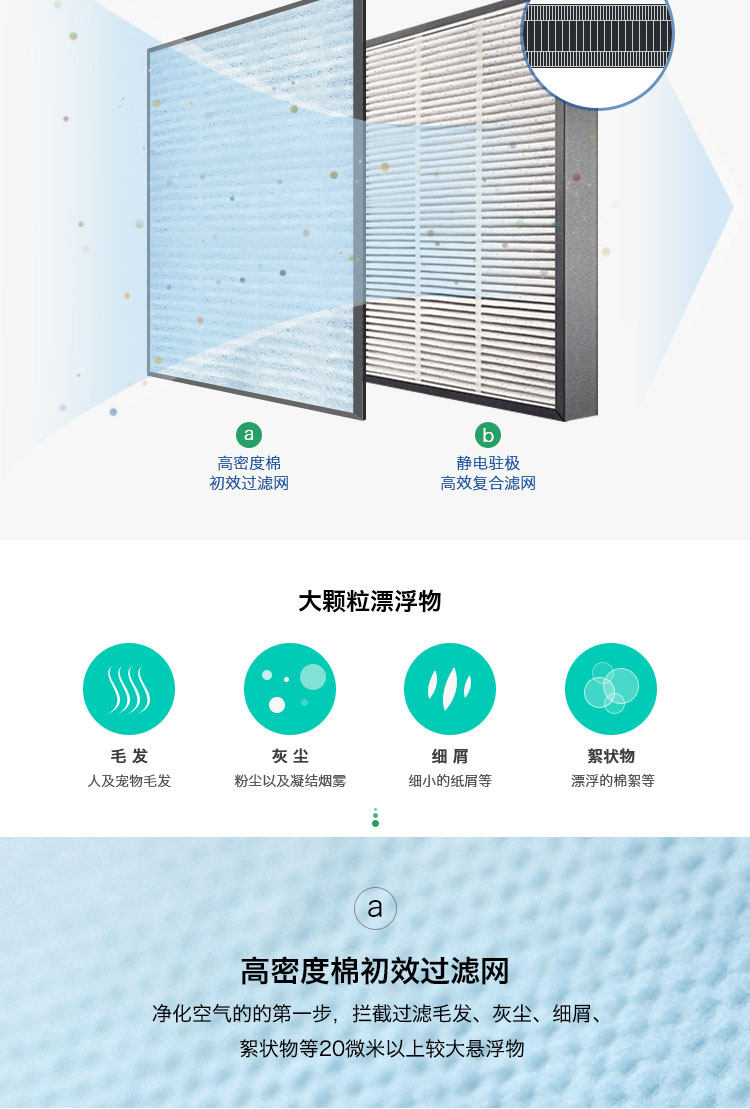 • 净化原理:HEPA滤网 活性炭 负离子 静电吸附